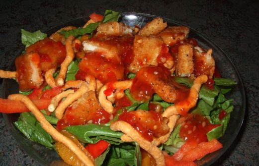 Une salade colorée et quelques peu épicée ! À noter que la sauce se vend douce ou forte selon les goûts mais je tiens à préciser que la sauce douce est quand même assez forte. -Laitue Romaine -Filet de poitrine de poulet panés -Morceaux d'ananas -Quartiers de mandarine -Poivrons rouges - [...]