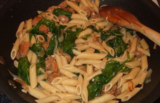 Ingrédients 1 c à thé huile d'olive oignon finement haché (facultatif) 500g saucisses italienne douces 1-1/2 tasse de bouillon de poulet 1 boîte de 450g grosses pâtes (pennes) 4 tasses de bébé épinard sel-poivre 4 c à soupe fromage parmesan Préparation Dans un poêle chauffer l`huile et [...]