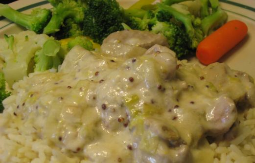 Préparation : 10 minutes Cuisson : 1hr Portion : 4 Ingrédients 1 c. à soupe Huile de canola 1 lb Cubes à ragoût de Porc du Québec (moi filet de porc) 3 Poireaux, coupés en bouchées 1½ tasse Bouillon (de légumes ou de volaille) 2 c. soupe moutarde à l'ancienne ½ tasse Crème champêt [...]