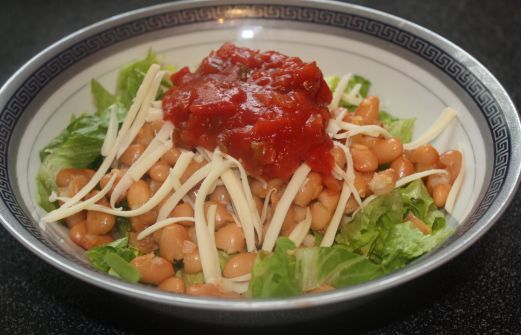 De retour de vélo. J'ai faim! Aaaarrrgghhh rien de prêt! Faut pas que je tombe dans la facilité et engloutir n'importe quoi. Ok j'ai des haricots qui sont cuits. Un pot de salsa... hummm.. ok, mais juste haricot et salsa ? Pas le temps de faire cuire des légumes, j'ai trop faim.. Voici c [...]
