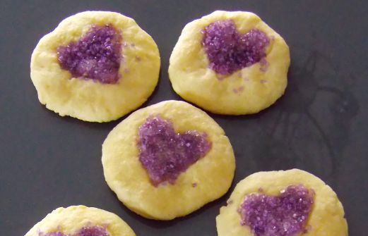 Pour une quinzaine de cookies : 60g de margarine 150g de sucre 1 œuf 1 cuillère à café d’extrait de vanille quelques gouttes d’arôme violette 240g de farine 1 bonne pincée de sel ½ sachet de levure chimique Pour la fin [...]