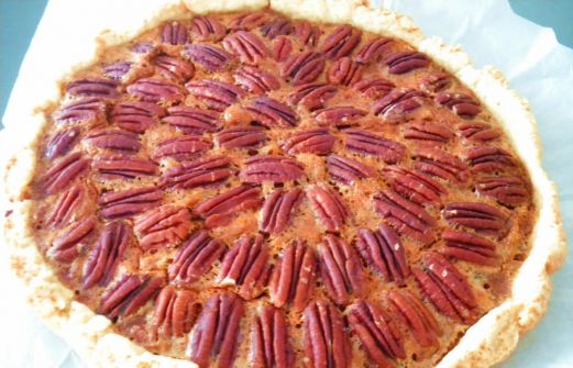 Pour la pâte brisée : 300g de farine 100 g de beurre 3 à 5 cuillères à soupe de lait froid Pour la Garniture : 2 grosses cuillères à soupe de miel 180g de sucre roux en poudre 1 grosse pincée de sel 4 oeufs 350g de noix [...]
