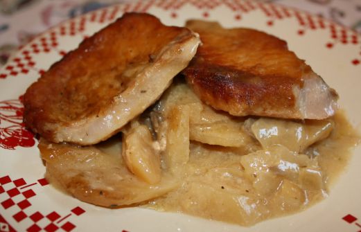 6 à 8 côtelettes de porc sans os 2 c. tb. huile 1 bt de crème de champignons 1/4 tasse de bouillon de poulet 1/4 tasse de moutarde de Dijon 1/2 c. thé de thym séché 1 gousse d'ail hachée 1/4 c. thé de poivre 6 patates moyennes en tranches fines 1 oignon tranché finement [...]