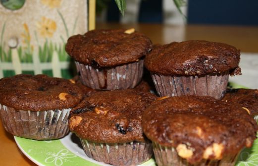 1 tasse de farine 1/3 tasse de cacao 2/3 tasse de sucre 2 c. thé de poudre à pâte 1/2 c. thé de sel 1 gros oeuf 2/3 tasse de lait 3 c. table d'huile végétale 1/2 tasse de pépites de chocolat blanc 2/3 de tasse de bleuets frais ou congelés Préchauffer le four à 350*F. [...]