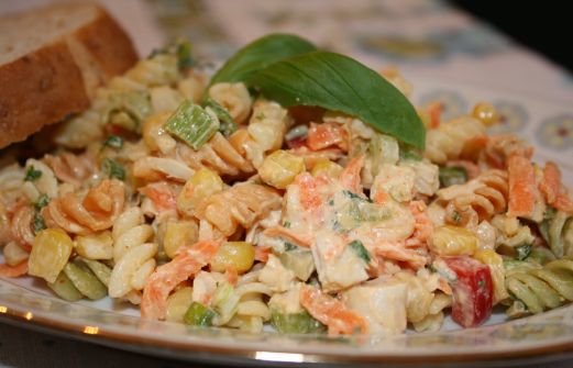 Salade: 1 tasse de maïs en grains 1/3 tasse de poivrons rouges 2 tasses de poulet cuit haché 2 oignons verts, hachés 1 c. soupe de persil frais haché 1 tasse de carottes râpées 2 tasses de fusilis cuits de couleurs Vinaigrette: 1/2 tasse de yougourt nature 1/4 [...]