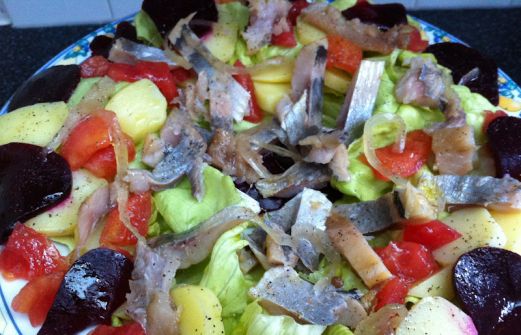 Je vous propose aujourd'hui une belle salade complète et gourmande... Je n'aime pas les harengs fumés mais mon mari oui!!! Pour cette belle salade (1 personne), il vous faut : 2 filets de hareng fumé doux 3 pommes de terre grenaille cuites à l'eau 3/4 de tomate un coeur de [...]