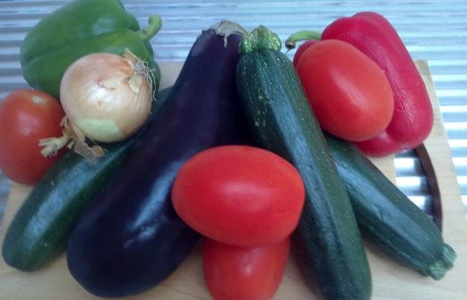 Pour cette recette, il vous faut : 1 aubergine 4 tomates italienne 3 courgettes 1 poivron vert 1/4 de poivron rouge 1 gros oignon 80g de lardons fumés thym, laurier 3 clous de girofle ail moulu sel et poivre piment doux (facultatif) Déroulement de la recette : [...]