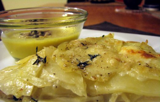 ...ou pizza aux patates comme l'appelle mon cher et tendre gourmand. Peut importe le nom, l'important c'est que c'était vraiment délicieux Sa m'a un peu fait penser à un gratin dauphinois. Cette recette je l'ai post-ité (l'action de mettre un post-it :)) aussitôt que j'ai reçu mon livre de [...]