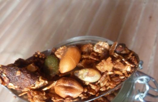 La première fois que j'ai réalisé un müesli (ou granola) maison, c'était en suivant une recette de Lilo . Depuis j'ai trouvé ma propre recette en variant les ingrédients de base (flocons, oléagineux, graines et fruits secs) mais aussi les quantités de corps gras et de sucres. J'ai choisi des f [...]