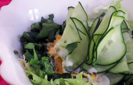 Pour deux à trois personnes 1/2 concombre 2 belles poignées de salade frisée 15 à 20 belles feuilles d'épinard, si ce sont des petites feuilles, multiplier par deux ou trois ! Quelques brins de persil plat Nettoyer la verdure et le concombre (conserver la [...]