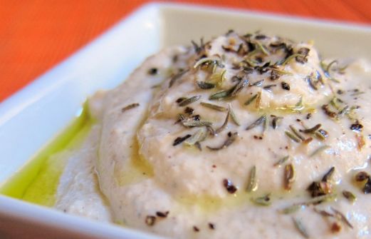 2 oz de noix de cajou (trempées 4 heures) 2 oz de graines de sésame (trempées 4 heures) Un filet d'huile d'olive avec un goût un peu prononcé Thym séché Une petite gousse d'ail Fleur de sel et poivre noir Eau, ajuster la quantité pour obtenir une consistance crém [...]
