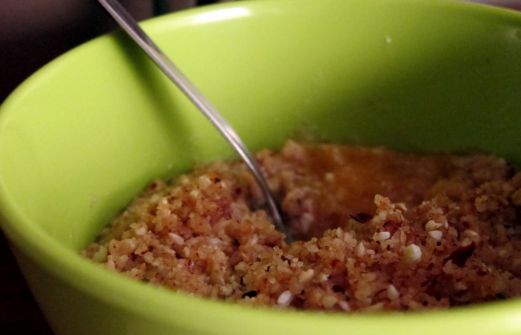 Envie d'un dessert d'hiver? Quoi de mieux qu'un crumble sans cuisson! Simple et rapide, il saura satisfaire petits et grands! Même pas besoin de déshydrateur! Pour une portion généreuse : 1 grosse pomme ou deux petites, un petit morceau de gingembre et deux cuillères à sou [...]
