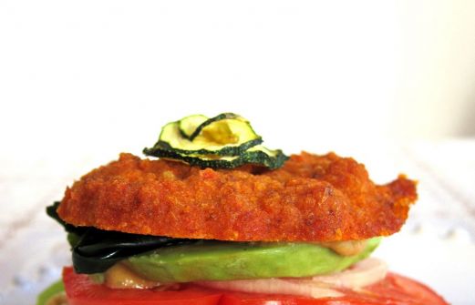 J'ai utilisé une recette de Kate Wood, ses burgers épicés aux amandes . Pour le reste, j'ai improvisé avec les légumes et ingrédients du moment. La recette pour 12 burgers : 30 ml de graines de lin moulues (2 cuillères à soupe) 2 carottes 3 tomates [...]