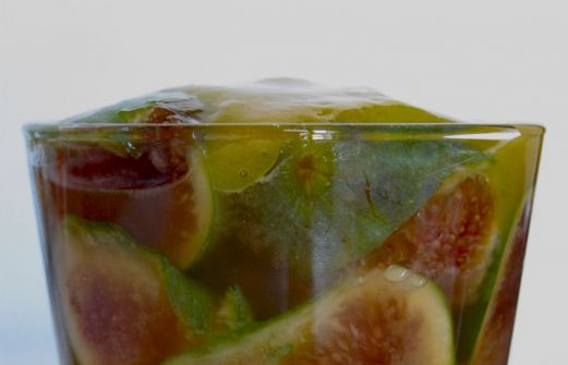 Grenade (Espagne), un matin de septembre, compote crue de pomme et citron, figues blanches fraîches de chez Al Sur de Granada (Charnues, sucrées, fondantes... J'en rêve encore!) et coulis de mangue et gingembre.