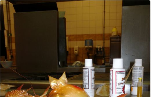 Voici ma première véritable réalisation en sucre... Il y a encore du travail ^^ Le corps du poisson est réalisé en sucre soufflé. Les nageoires sont en sucre tiré. Et le socle quant à lui est en sucre coulé. La réalisation du socle : On cuit le sucre. On le teint [...]