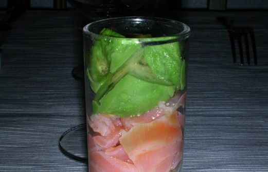 Cette verrine peut être servie en amuse-bouche ou comme petite entrée. La saumon et l’avocat vont si bien ensemble qu’ils se suffisent à eux-mêmes. J’ai simplement arrosé de quelques gouttes de jus de citron les dés d’avocat pour éviter qu’ils ne noircissent. Pour chaque verrine, j [...]