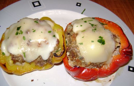 #fullpost{display:inline;} Ingrédients pour 4: 4 petits poivrons rouges et jaunes 400 gr. de viande hachée 2 cuillères à soupe de fromage râpé 100 gr. mie de pain 2 cuillères à soupe de câpres 2/3 anchois sous huile 1 oeuf 4 tranches de fromage à pâte molle ( [...]