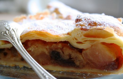 Pour une tourte aux fruits de 8 parts: 4 pommes, 1 orange, 100 gr d'abricots secs, 100 gr de pruneaux, 2 pâtes feuilletées, 60 gr de beurre, 1 gousse de vanille, 2 jaunes d'oeufs et du sucre glace Pelez-les pommes et découpez les en petits dés, émincez-les abricots et les pruneaux, d [...]