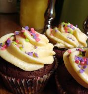 Petites tartelettes en pâte sablée (là , la recette) au citron (ici, la recette du lemon curd) et pour le reste, c'est de la décoration de bonbons...