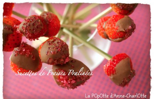 Y'a pas de doute, ce sont bien les dernières fraises du jardin pour cette saison. Alors profitons en pour les chouchouter et leur donner fière allure. Sucettes de Fraises Pralinées Ingrédients pour une vingtaine de sucettes : - 250g de fraises "du jardi [...]