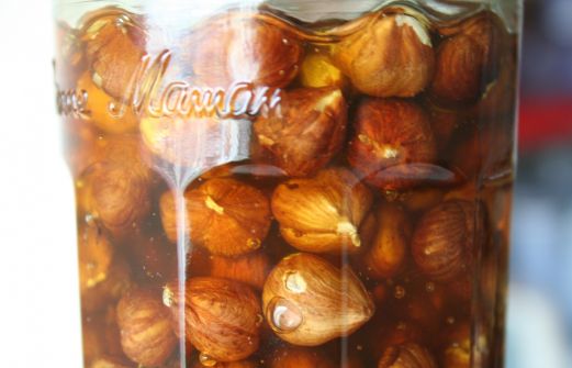 Ingrédients : Des noisettes Du miel Verser des noisettes dans un pot à couvercle. Recouvrir les noisettes de miel, et laisser ainsi plusieurs jours. C'est tout! Inspiré par Caro