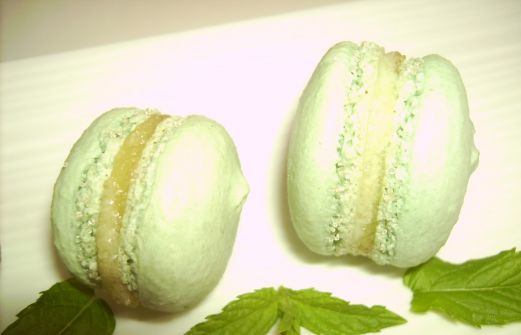Encore une commande spécial anniversaire. Un macaron bi-couche d'un joli vert pastel fourré de lime curd et d'une ganache au chocolat blanc à la menthe et au rhum. Pour une recette de macaron détaillée, c'est là . Macarons mojito Environ 35 macarons Coques 150 g de poudr [...]