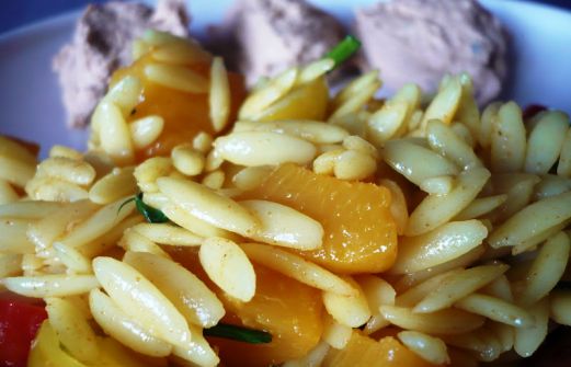 Je sais que cela n'a rien de vraiment original, c'est même sans doute un peu ringard mais voilà on peut pas manger moléculaire-trendy tous les jours. J'ai décliné le duo thon-pêches en une salade de pâtes grecques colorées (pour pallier au manque de lumière solaire) avec sa ptite mousse d [...]