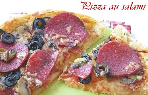 Pâte à pizza: * 250 g de farine * 20 g de levure de boulanger * 50 ml d'huile d'olive * 150 ml d'eau tiède * 1 grosse pincée de sel Garniture: * 1/2 boîte de sauce tomate concentrée * 12 à 14 tranches de salami * 100 g de salami d'été * 100-120 g de sauce tomate [...]