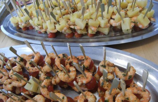 Quelques brochettes aux crevettes ont également égayé le buffet apéritif de la fête des 80 ! La veille décortiquez 2,5 kg de crevettes roses et répartissez la moitié dans deux boites hermétiques.  Dans la première faire une marinade en mélangeant 3 gousses d'ail hachées, une bo [...]