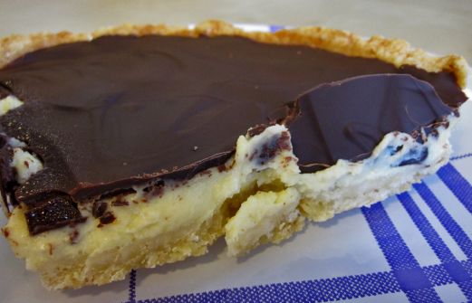 Encore une tarte ! Voici la tarte au citron que je préfère. La texture de l'appareil au citron est mousseuse et fondante, au bon goût de citron. Le tout est surmonté d'un glaçage au chocolat pur, croquant, et assez peu pratique à manger proprement, certes. Mais le croquant du choco [...]