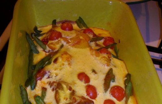 Pour deux gros croquants gourmands Ingrédients : - 300g de haricots verts surgelés ou frais - 2 grosses tomates ou une 1/2 boite de 125g de purée de tomate - 1 cuillère à soupe d'huile d'olive - 1 yaourt nature - 1 œuf - 1 pincée de paprika - un peu d'éch [...]