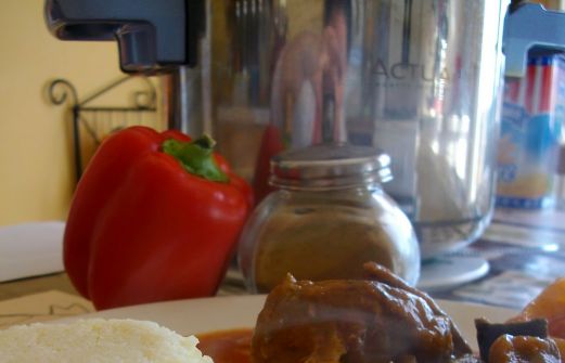 Pour deux personnes : Ingrédients : - trois morceaux de boeuf ( joue, collier...) - 1 cuillère à soupe de sucre - 1 noix de beurre, deux cuillères à soupe d'huile d'olive - 1/2 boite de purée de tomate - épices à couscous (deux cuillères à café) -1 oignon - [...]