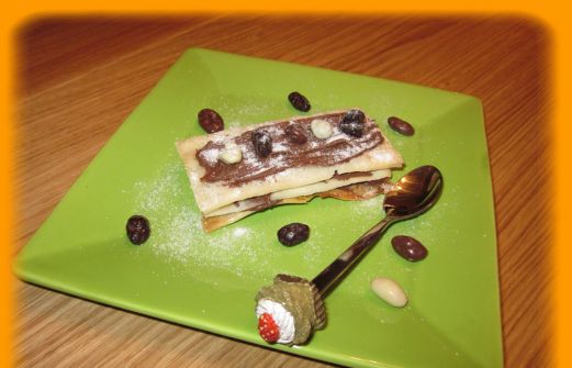 INGREDIENTS: Une pâte feuilletée nutella des raisins aux chocolat spéculoos sucre glace PRÉPARATION: Réalisez des rectangles de pâte feuilletée et les passez environ 10-15 minutes au four thermostat 180°C. Dans une assiette dressez une couche de pâte feuilletée, du nutella et une pi [...]