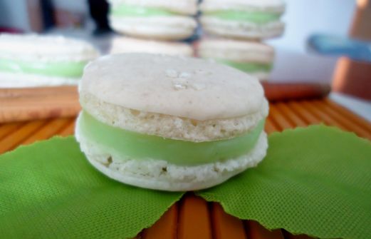Pour un petit goût oriental, ces macarons dont les coques sont faites avec de la poudre de sésame sont garnis d'une ganache chocolat blanc-thé vert. Une expérience gustative très zen...