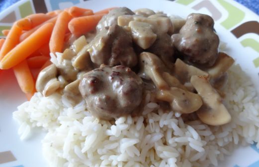 Boulettes suédoises Ingrédients: 1 lb (454 g) de boeuf haché mi-maigre ½ c. à thé (2.5 ml) de poivre de la Jamaïque (j’ai mis des Épices Mélangées McCormick) ¼ tasse (60 ml) de chapelure nature 1 ½ tasse (375 ml) de bouillon de boeuf ¼ tasse (60 ml) de crè [...]