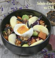 4 personnes, 6 pp ou flexip. 150 g de roquette 1 salade feuille de chêne 200 g de mâche 2 poires 80 g de noix 1 jus de citron 8 cc d'huile de noix 7 cc de bouillon de légumes dégraissé Laver et essorer les salades, ciseler la feuille de chêne. Décortiquer les noix, en hacher les 2/3 [...]
