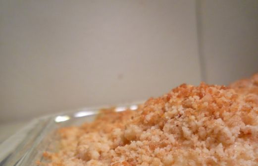 Ingrédients: 600g de chou-fleur 180g de fromage de chèvre 20cl de crème liquide Noix de muscade 1 cube de bouillon de boeuf Pour le crumble: 60g de farine 50g de chapelure 60g de beurre demi-sel froid 1. Lavez le chou-fleur et coupez-le en petits bouquets. 2. Faites b [...]
