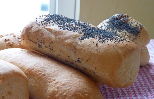 La recette: 320 g d'eau 90 g de farine de seigle 510 g de farine T65 10 g de sucre semoule 1 càc et demie de sel 20 g de levure fraîche quelques graines de pavot ou de sésame pour la décoration des pains. Pétrir les ingrédients avec le crochet du robot pétrisseur [...]