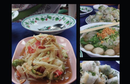 La cuisine laotienne m'a parue un peu moins diversifiée que la cuisine thaïlandaise, à laquelle elle ressemble néanmoins à bien des niveaux. L'influence vietnamienne est également bien présente, comme en témoignent les assiettes débordantes de verdure servies en accompagnement de nomb [...]