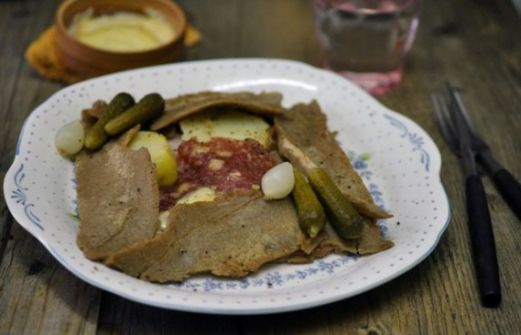 Pour la chandeleur : une galette pour le temps de froid ! Galette de sarrasin à la raclette – pomme de terre, jambon, cornichon Recette de base de Pâte à crêpes au sarrasin (M6-le chef en France)  Ingrédients Pour 6 per [...]