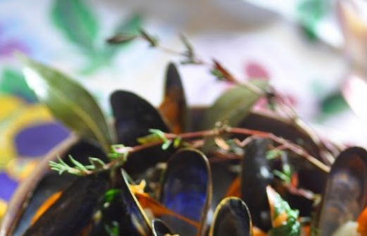 Ce dimanche, à l’heure bleue, l’odeur de la mer salée, tout doux… à ma casserole les moules de bouchot de la Baie du Mont Saint Michel… d'une saveur proche de celle de l’oursin, d'une chair orangée et des coquilles bleues qui changent de profondeur et parfois chatoyantes dans la lumière. [...]
