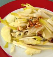 400g d'endives 1 petite pomme 1 oignon le jus d'un citron 50 g d'amandes hanchées 2 cubes de bouillon de légumes 1 l d'eau 25 cl de crème fraiche 1 c à soupe de sucre sel poivre Dans un faitout faire revenir dans un peu d'huile l'oignon et les endives émincés, les amandes et la pomme en pe [...]