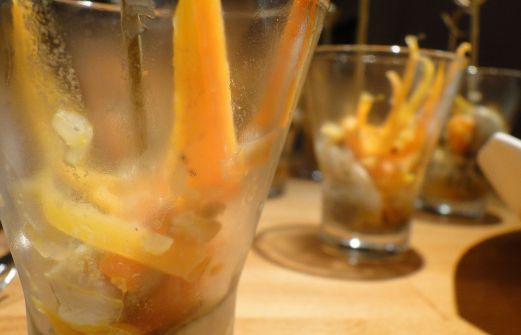 On passe aux shooters d'huîtres : Très simple encore une fois et très savoureux, c'est ce qui a le plus plu je pense dans tout l'apéro... Une jus délicat et la conservation du goût iodé de l'huître en fait aussi mon favoris!! A faire et à refaire sans modération... Pou [...]