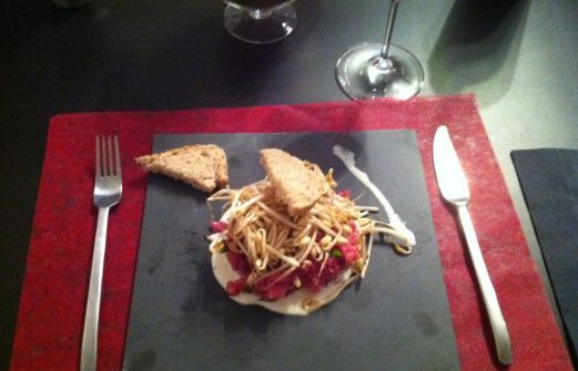 Tartare de boeuf au gorgonzola : - 350gr de filet de boeuf - un bouquet de basilic - 2 cuil. à soupe de pignons - huile d'olive - 2 cuil. à soupe de citron - 30gr de gorgonzola bien crémeux - 20gr de crème liquide - 1 cuil. à soupe d'huile de sésame - 150gr de [...]