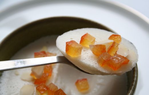 C'est une recette inspirée de Cléa (Rêve d'orient) sur son livre l'agar agar. C'est très léger, très simple et sain. - 400 ml de lait d'amande - 1cs de purée d'amande (facultatif) - 2cs d'eau de fleur d'oranger - 1cc d'agar agar - zestes d'orange confits pour la déco [...]