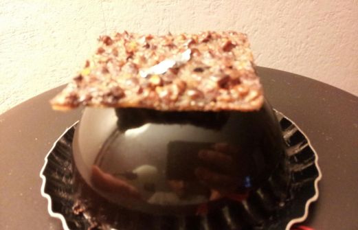 Le Dôme Noir mousse chocolat noir, cœur crémeux à la vanille sur un biscuit à la noisette. Excellent Carl Marletti 51 Rue Censier, Paris