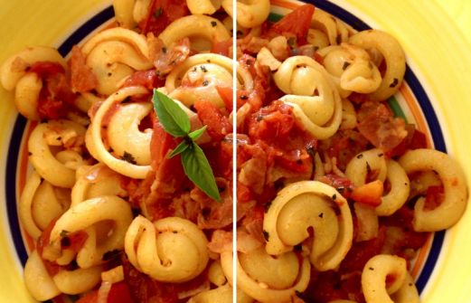Cappelletti all’amatriciana Temps de préparation : 15 minutes Temps de cuisson : 15 minutes Ingrédients (pour 4 personnes) : 2 cuillères à soupe (30 ml) huile olive extra vierge 160 g pancetta fumée (ou bacon), coupée en dés 2 cuillères à so [...]