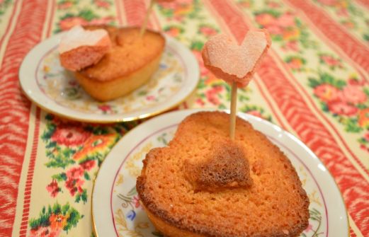 Quatre-quarts coeurs aux biscuits roses de Reims Deux petits quatre-quarts coeurs aux biscuits roses de Reims pour la Saint-Valentin. Ingrédients (pour 2 coeurs) : - 40 g de biscuits roses de reims + 2 biscuits pour les coeurs - 10 g de farine - 40 g de su [...]