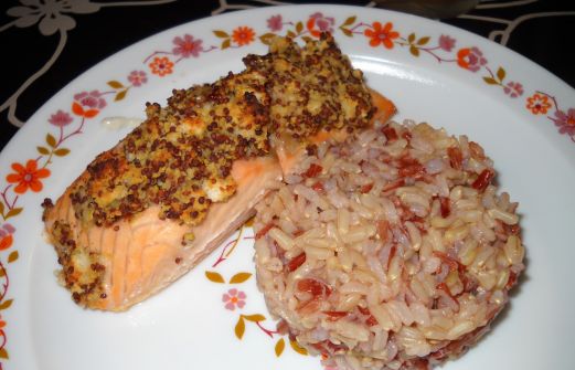 Préparation : 10mn - Cuisson : 20mn - Difficulté : Facile Ingrédients pour 4 personnes : - 4 pavés de saumon (entre 200 et 300gr chacun) - 2 tranches de pain de mie - 3 cuillères à soupe de moutarde à l'ancienne - 1 cuillère à café de persil - 1 cuillère à c [...]