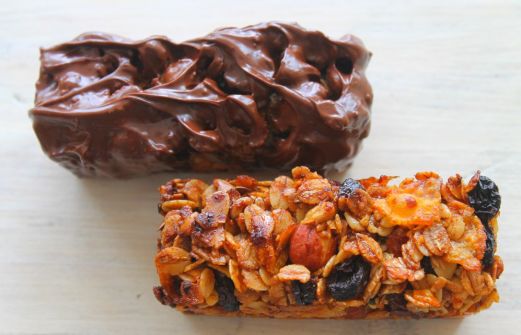 Trop facile et trop bon ... Foncez :) Pour 9 petites barres, il vous faudra : 100 gr d'un mélange de fruits secs ( ici : bananes, fruits tropicaux, raisins, noisettes, noix de cajou, amandes) 200 gr de muesli bio 40 gr de beurre demi-sel fondu 2càs d'huile de tournesol [...]